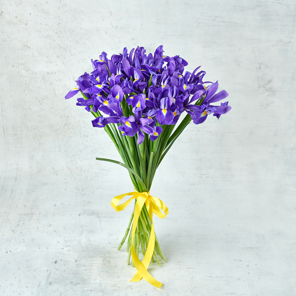 Ирисы - уникальный благородный цветок, ассоциирующийся с весной, творчеством и трогательными признаниями. Возможны небольшие изменения элементов. Общий вид и композиция букета будет сохранена.