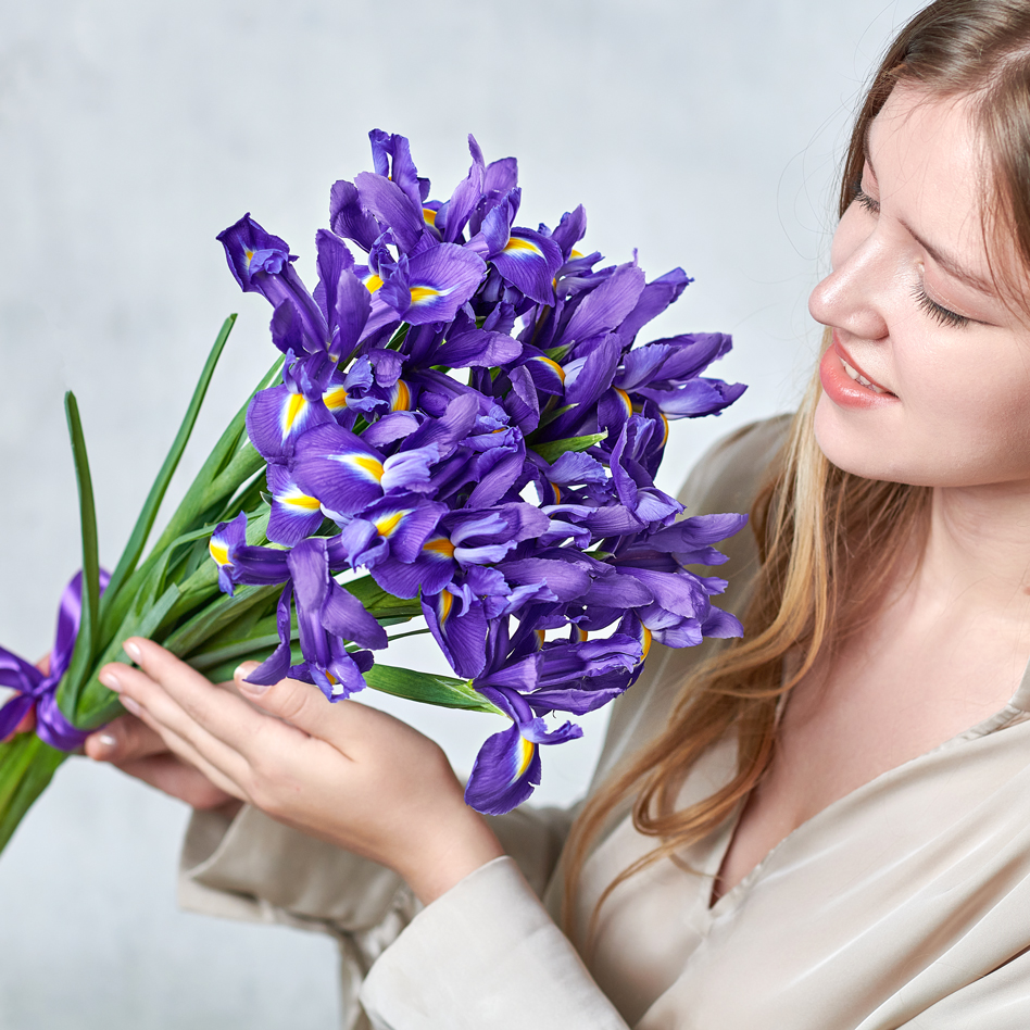 Весеннее очарование, хрустящая листва и романтичные прогулки под ярким небом. Ирисы - цветы, которые вдохновляют. Возможны небольшие изменения элементов. Общий вид и композиция букета будет сохранена.