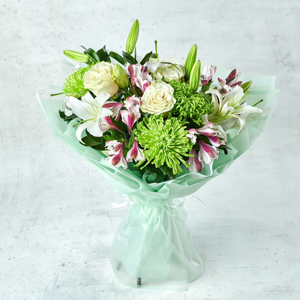 Завораживающее сочетание лилий, роз и альстромерий подойдет для свиданий, дней рождений или в качестве подарка без повода. Возможны небольшие изменения элементов. Общий вид и композиция букета будет сохранена.