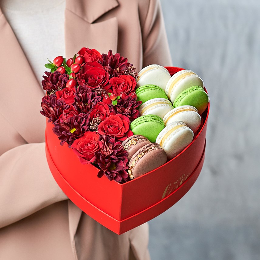 Композиция из бархатных роз, рубиновой хризантемы и сладкого сюрприза станет прекрасным поводом для новых встреч. Возможны небольшие изменения элементов. Общий вид и композиция букета будет сохранена.