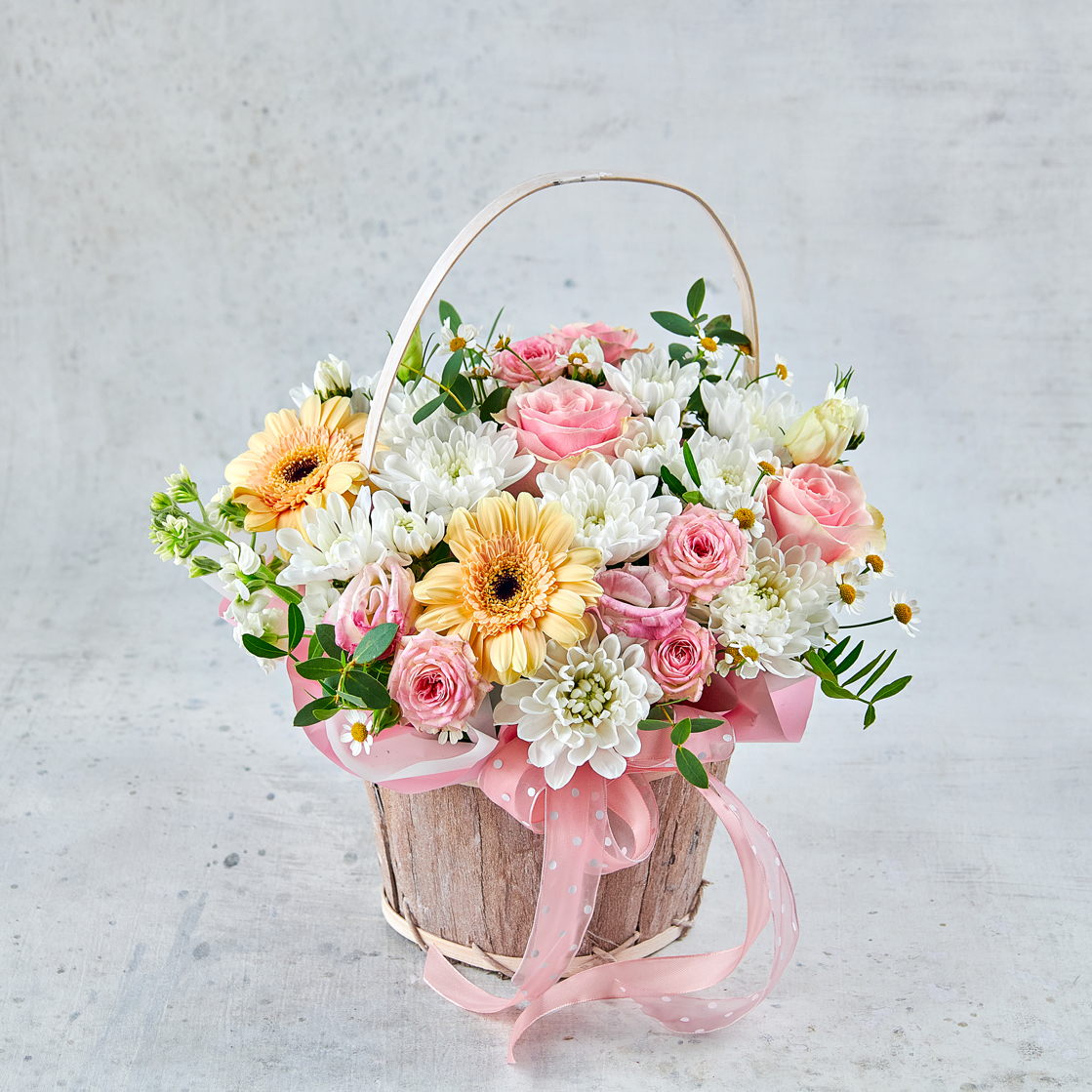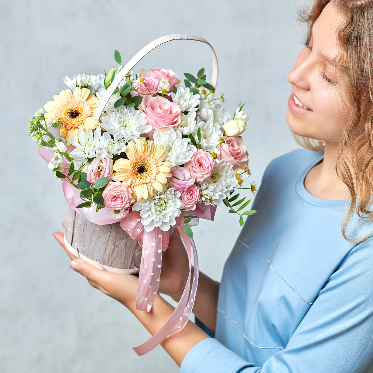 Гипюровое облако кружевных хризантем, нежных гермини и роскошных кустов безупречных роз. Идеальное цветовое решение для юных дам и изящных особ. Возможны небольшие изменения элементов. Общий вид и композиция букета будет сохранена.
