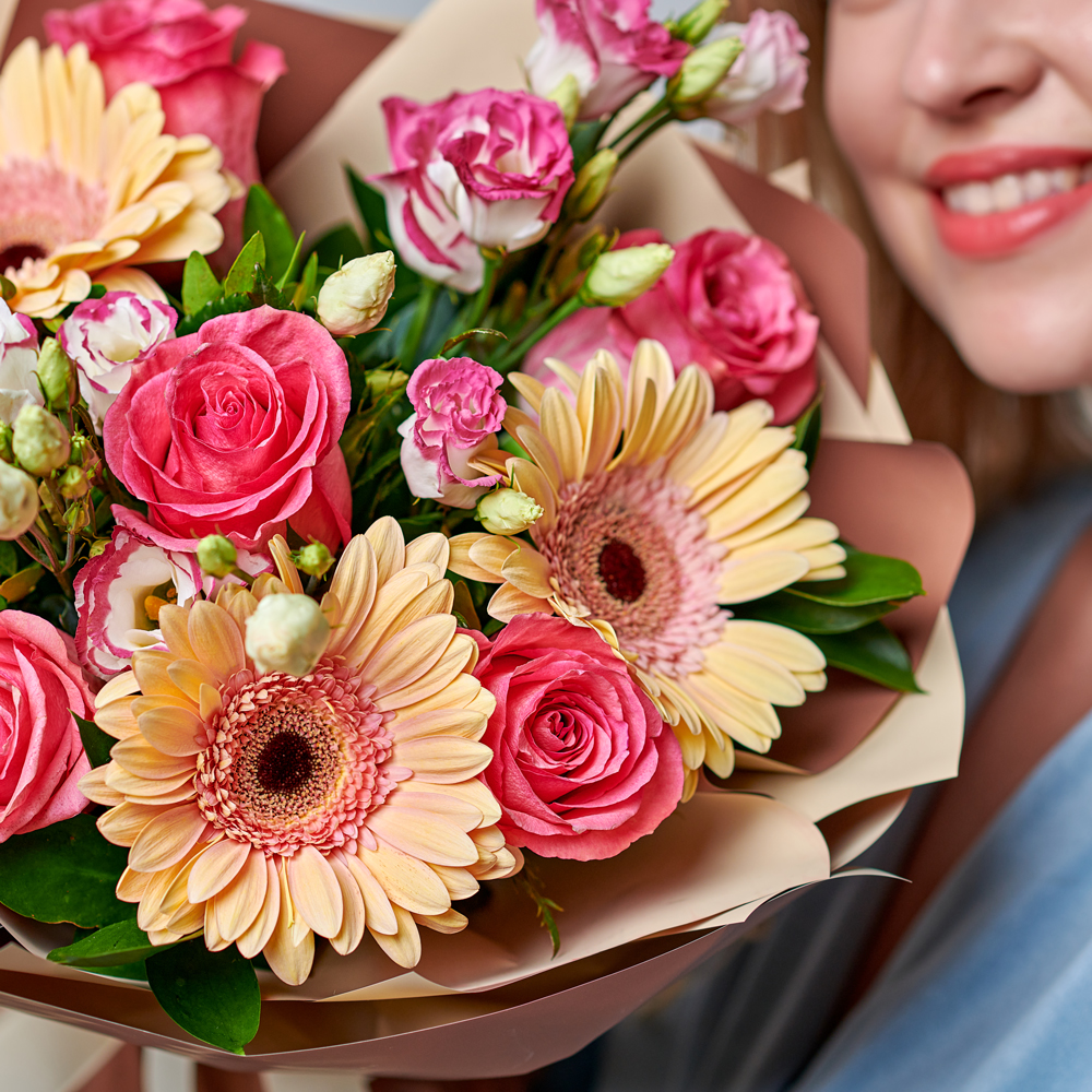 Сборный букет - способ сказать «люблю» на всех языках мира, ведь каждый цветок имеет свое значение. Герберы, изящная эустома и нежнейшая Роза точно заставят улыбнуться ваших близких.