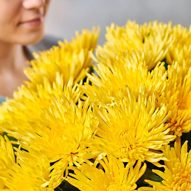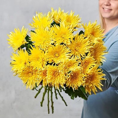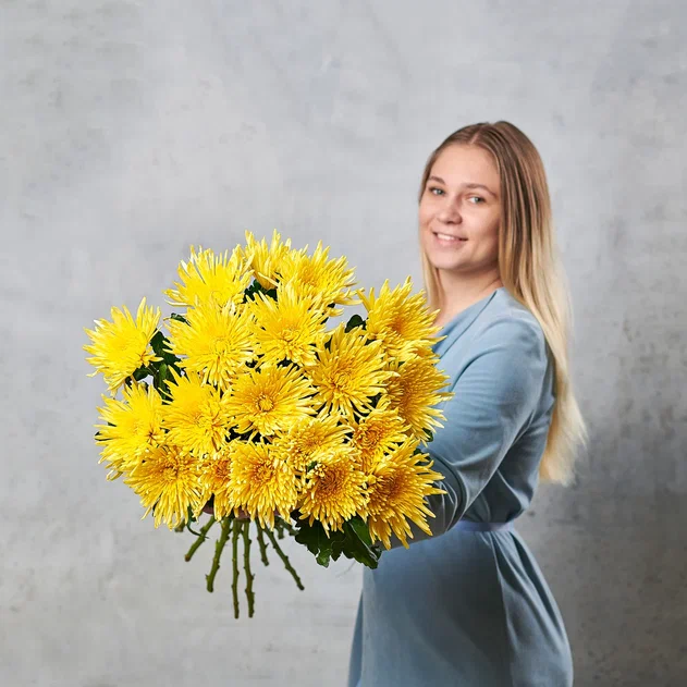 Хризантема "Анастасия" , имеет один крупный цветок с тонкими изящными лепестками, складывающихся в сияющую звезду.