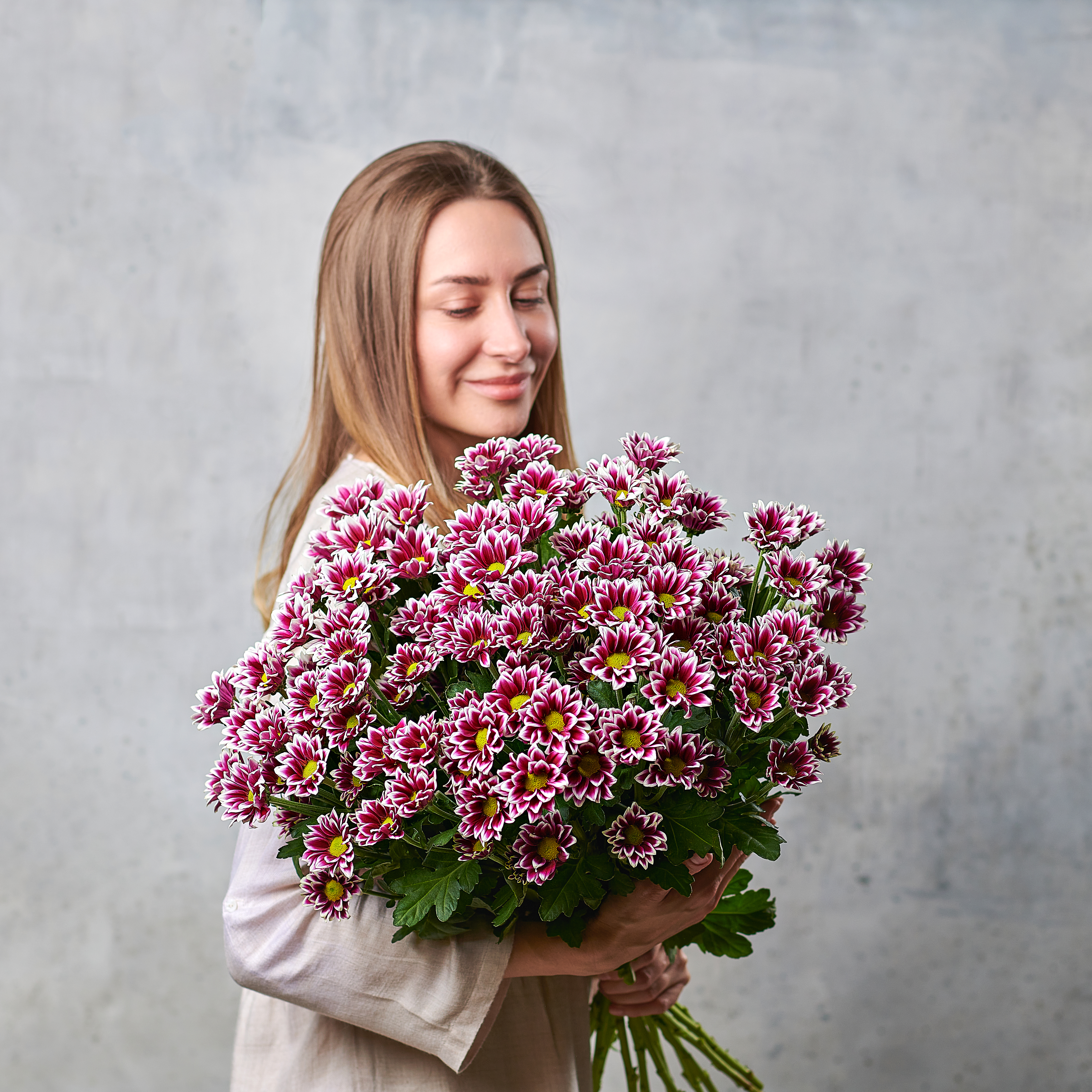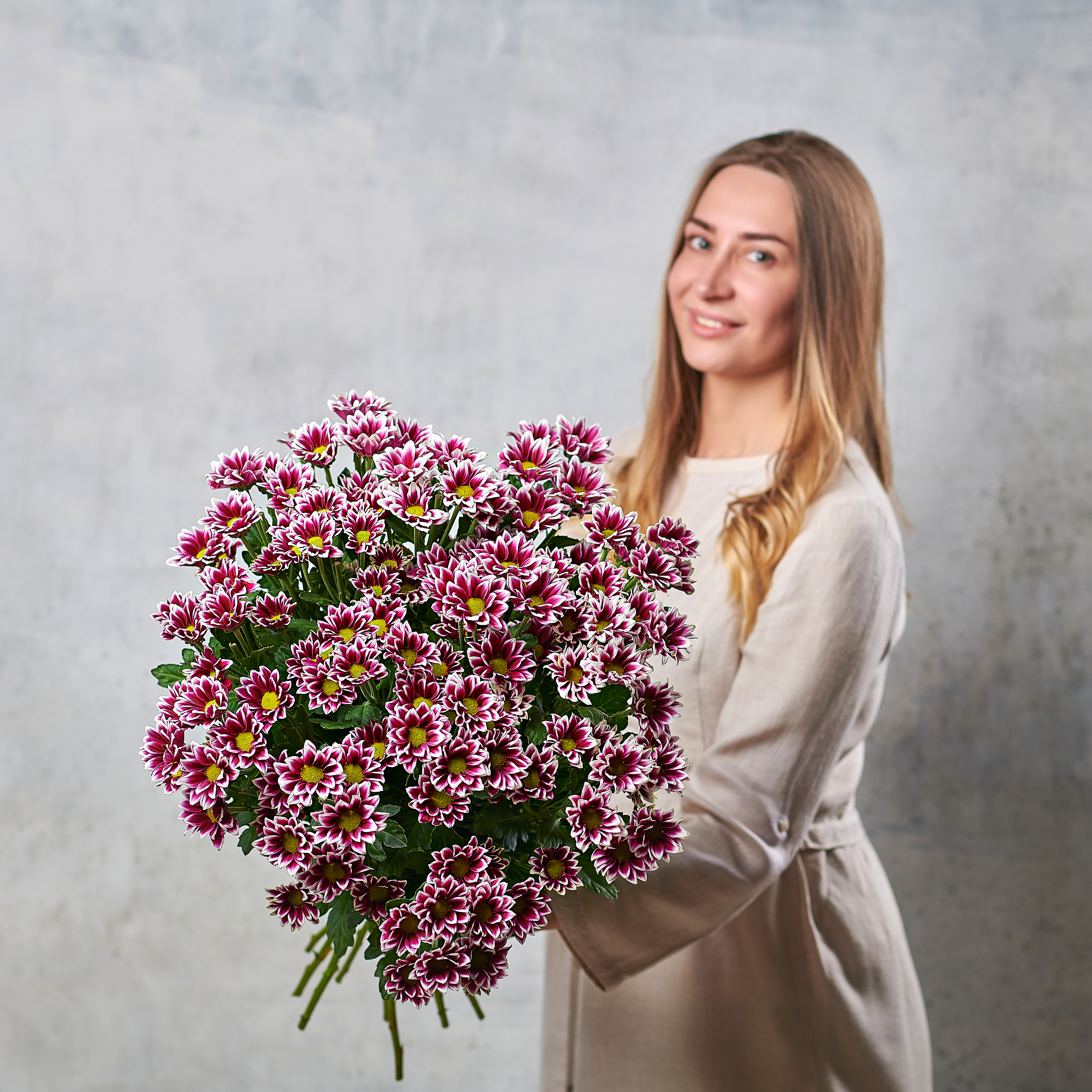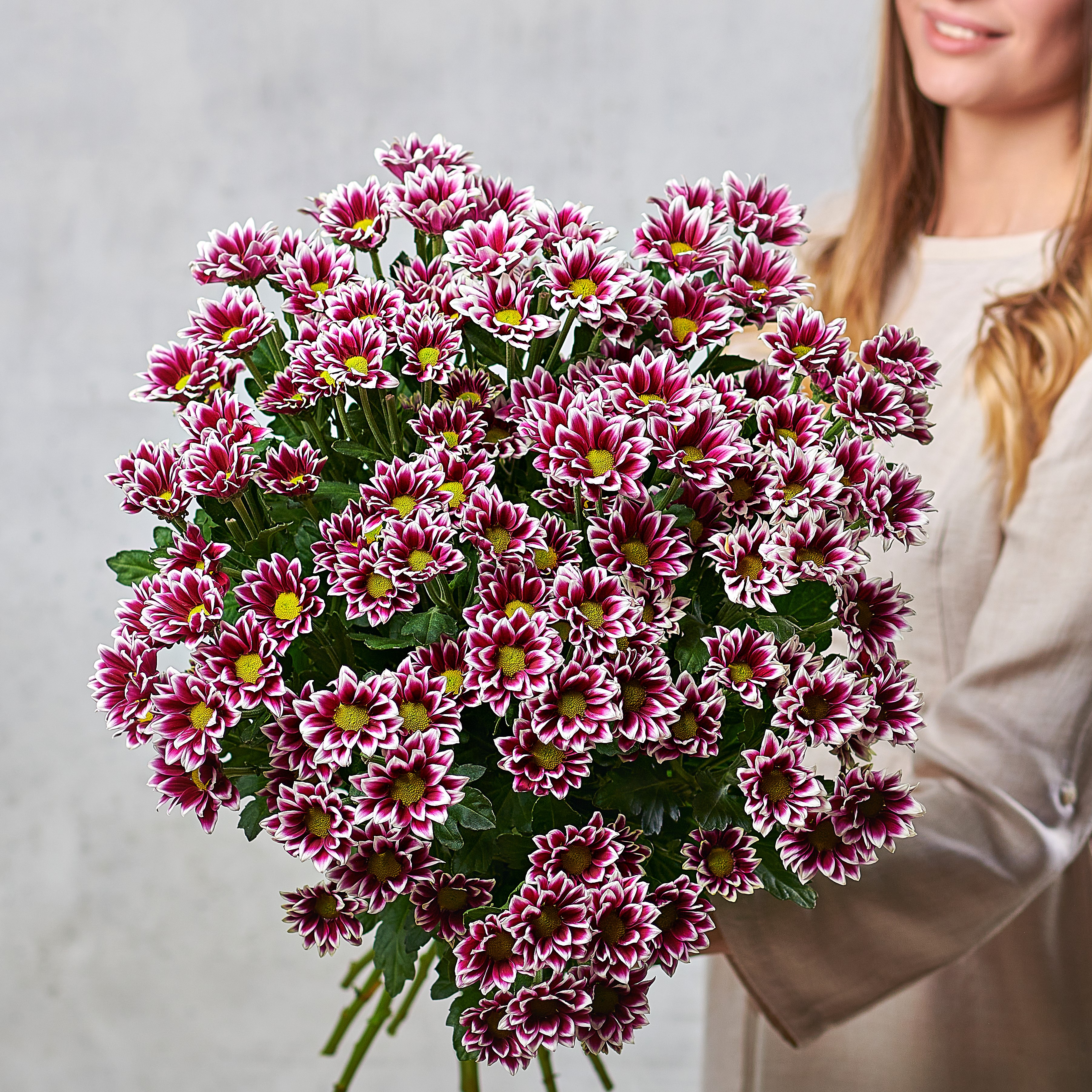 "Хайдар" - удивительный яркий сорт хризантем с индийским флером. Двухцветная окраска с лепестками ложковидной формы, окрашенные в драматичный глубокий фиолетовый оттенок.